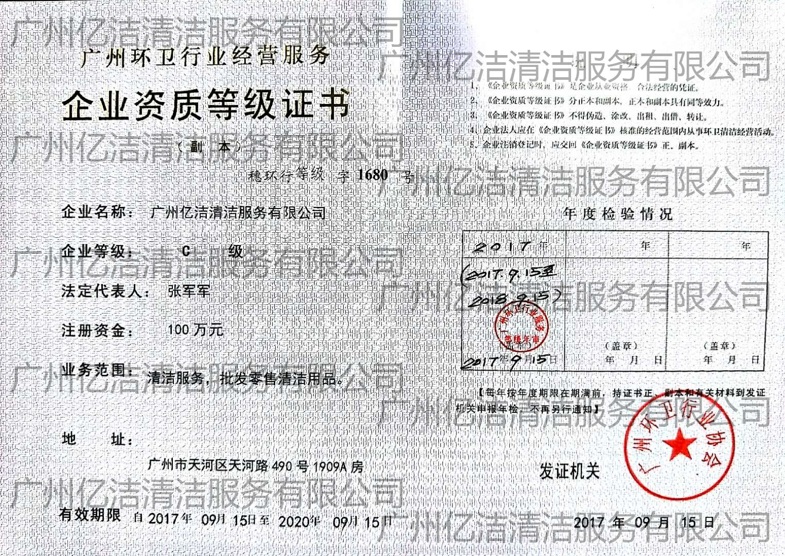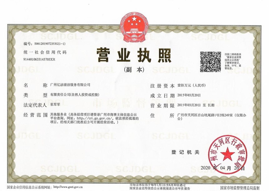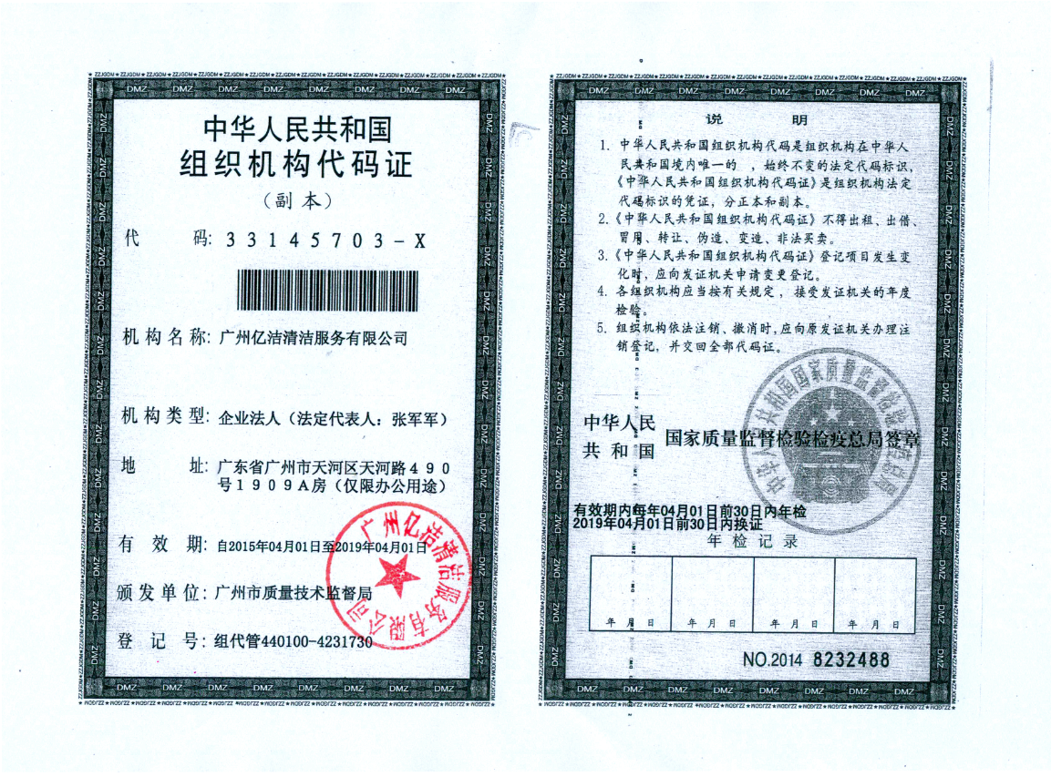 廣州億潔清潔服務(wù)有限公司是經(jīng)廣州市工商行政管理局批準(zhǔn)成立的(注冊(cè)資本:100萬(wàn)元人民幣)。具有獨(dú)立法人資質(zhì)。公司成立2015年,公司具備完善的管理體系和高素質(zhì)管理隊(duì)伍,擁有特種技術(shù)人員33名,保潔服務(wù)人員上萬(wàn)名,覆蓋廣州市,能及時(shí)調(diào)配并快速投入高效運(yùn)行。我們的每個(gè)員工都經(jīng)過(guò)公司的嚴(yán)格篩選,嚴(yán)格培訓(xùn),定期培訓(xùn)后持證上崗以保證服務(wù)品質(zhì),保障客戶(hù)的權(quán)利,利益,形象等不受損失。 廣州億潔清潔公司是一家設(shè)備齊全,技術(shù)強(qiáng)大的綜合型清潔服務(wù)公司,為客戶(hù)提供完善服務(wù)尊定了堅(jiān)定的基礎(chǔ)。 司于2010年全面推行了ISO9001質(zhì)量管理體系認(rèn)證和ISO14001國(guó)際環(huán)保體系認(rèn)證。先后獲得廣州高層建筑外墻清洗維修作業(yè)【安全資質(zhì)證書(shū)】、【廣州環(huán)衛(wèi)企業(yè)等級(jí)證書(shū)C級(jí)資質(zhì)】、廣州疾控中心頒發(fā)的【四害消殺服務(wù)資質(zhì)證】、【空氣治理A級(jí)資質(zhì)】、中國(guó)石材協(xié)會(huì)頒發(fā)的【石材資質(zhì)B級(jí)資質(zhì)】等。 廣州億潔清潔服務(wù)有限公司致力于打造專(zhuān)業(yè)、實(shí)惠、靠譜的保潔服務(wù)公司,把專(zhuān)業(yè)的事情交給專(zhuān)業(yè)的我們,您放心! 億潔清潔服務(wù)項(xiàng)目: 廣州保潔服務(wù):新建樓宇、別墅、酒店、醫(yī)院、辦公樓、賓館、企事業(yè)單位廠房竣工后開(kāi)荒及裝修后精細(xì)保潔.工程保潔服務(wù)。 廣州物業(yè)托管:為廣州市各大企事業(yè)單位、賓館、政府機(jī)關(guān)、小區(qū)物業(yè)、酒店及廠房提供專(zhuān)業(yè)化保潔、園林、設(shè)施維護(hù)等管理服務(wù)。 廣州高空作業(yè):高空玻璃幕...[詳情]